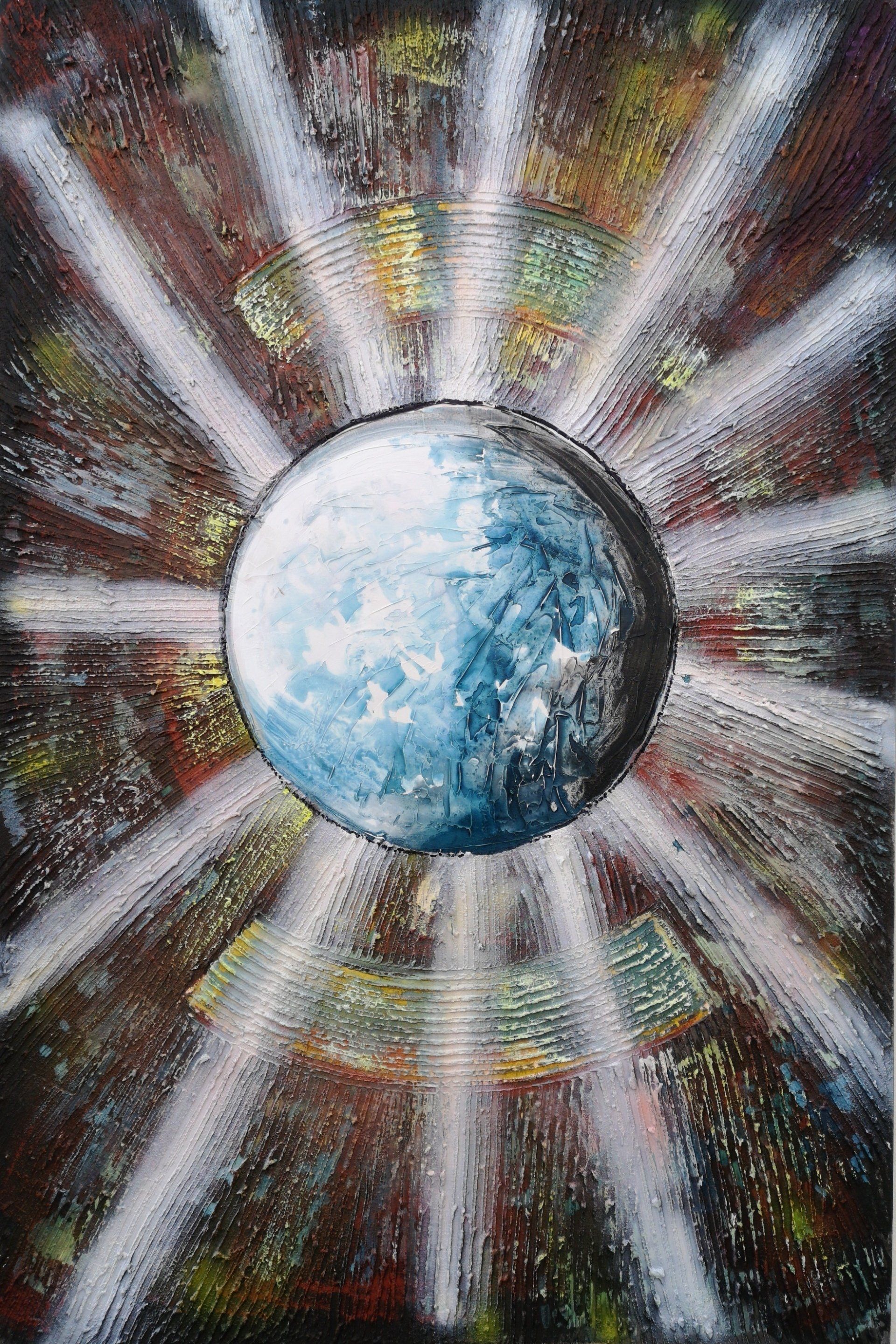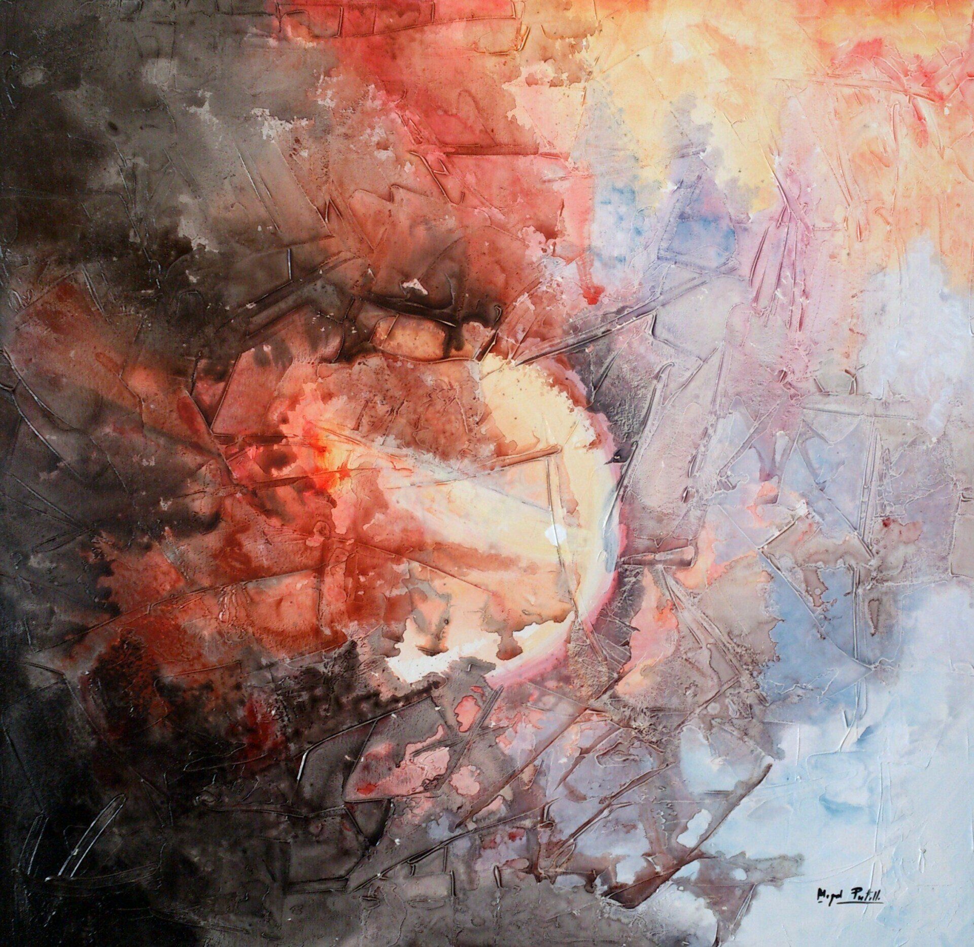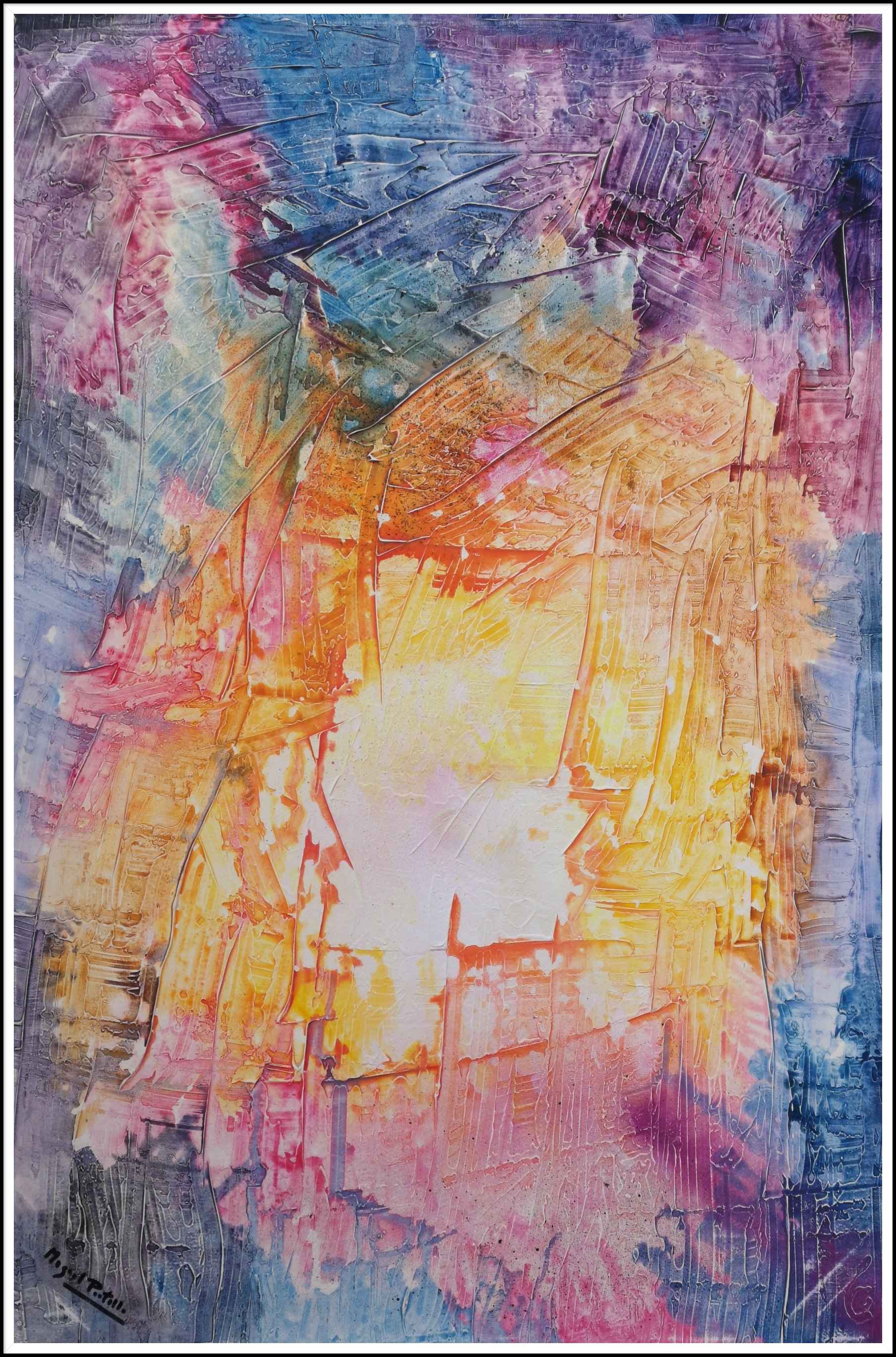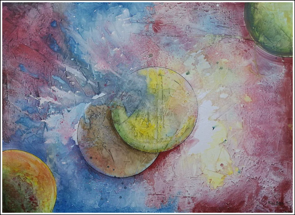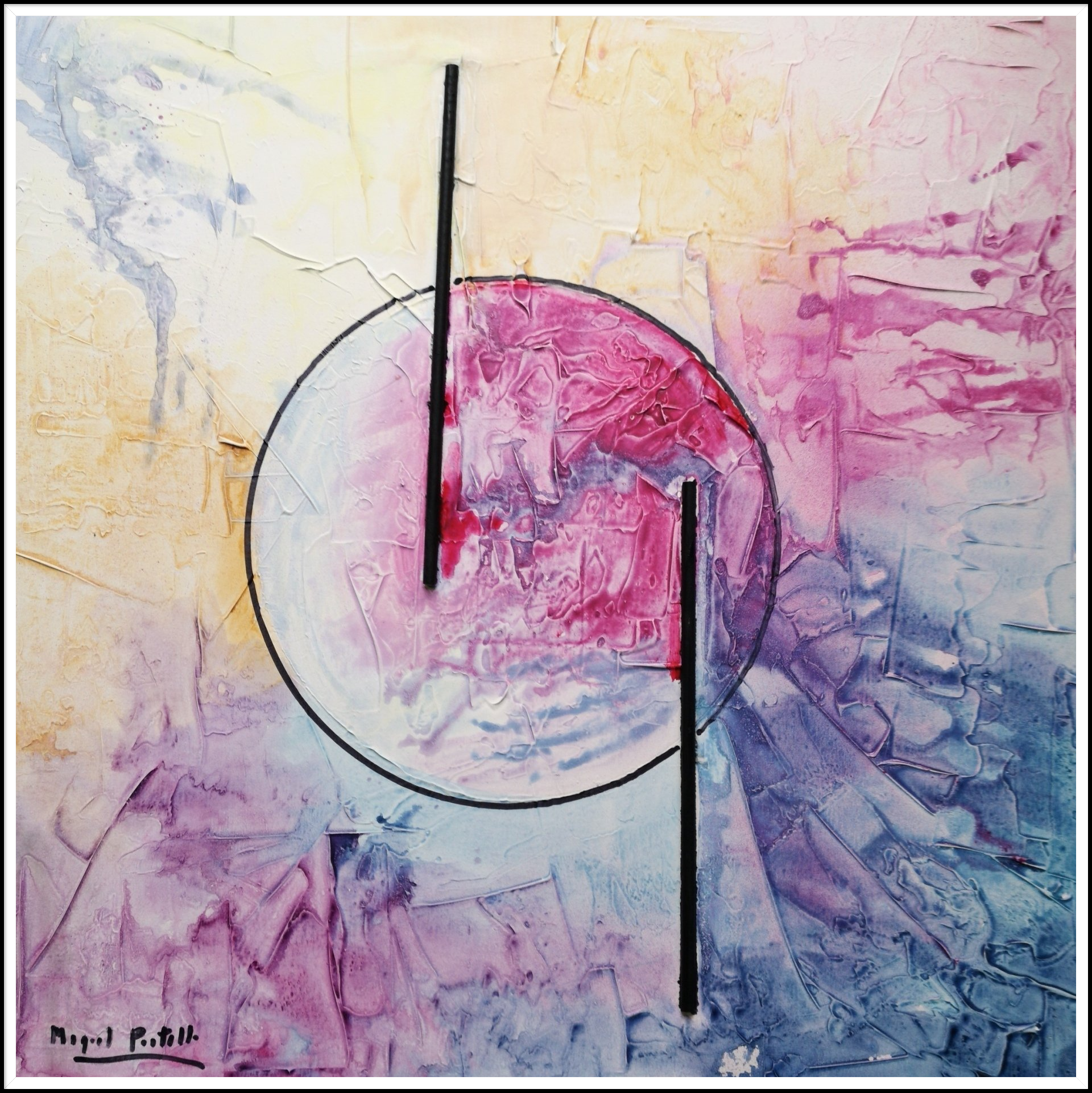 Tempestad del universo, explosiones de energía y color, círculos y esferas, fusiones y conexiones entre materias y pigmentos, impresión visual que hacen que el cuadro pierda su esencia ante el esplendor del color y la limpieza del mismo que demuestran que es un maestro del mismo.